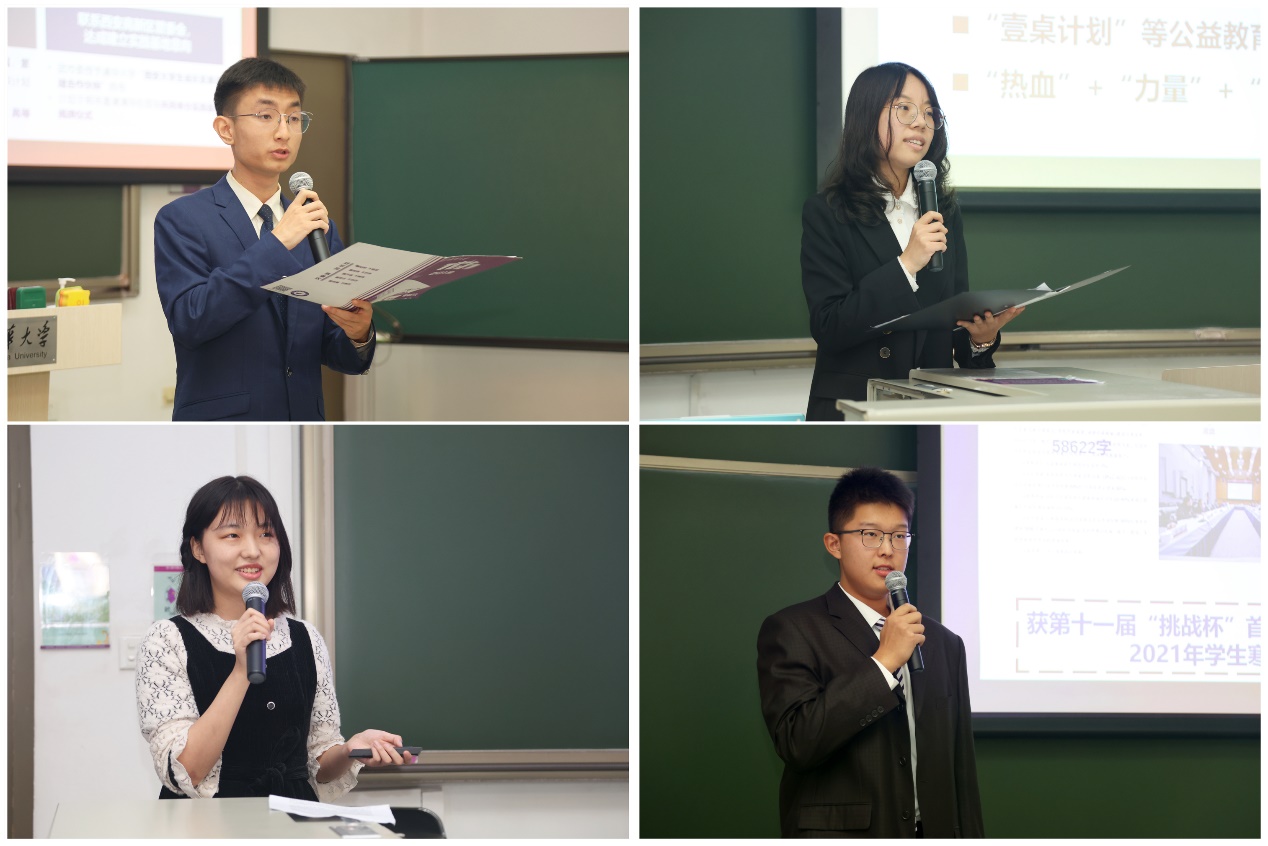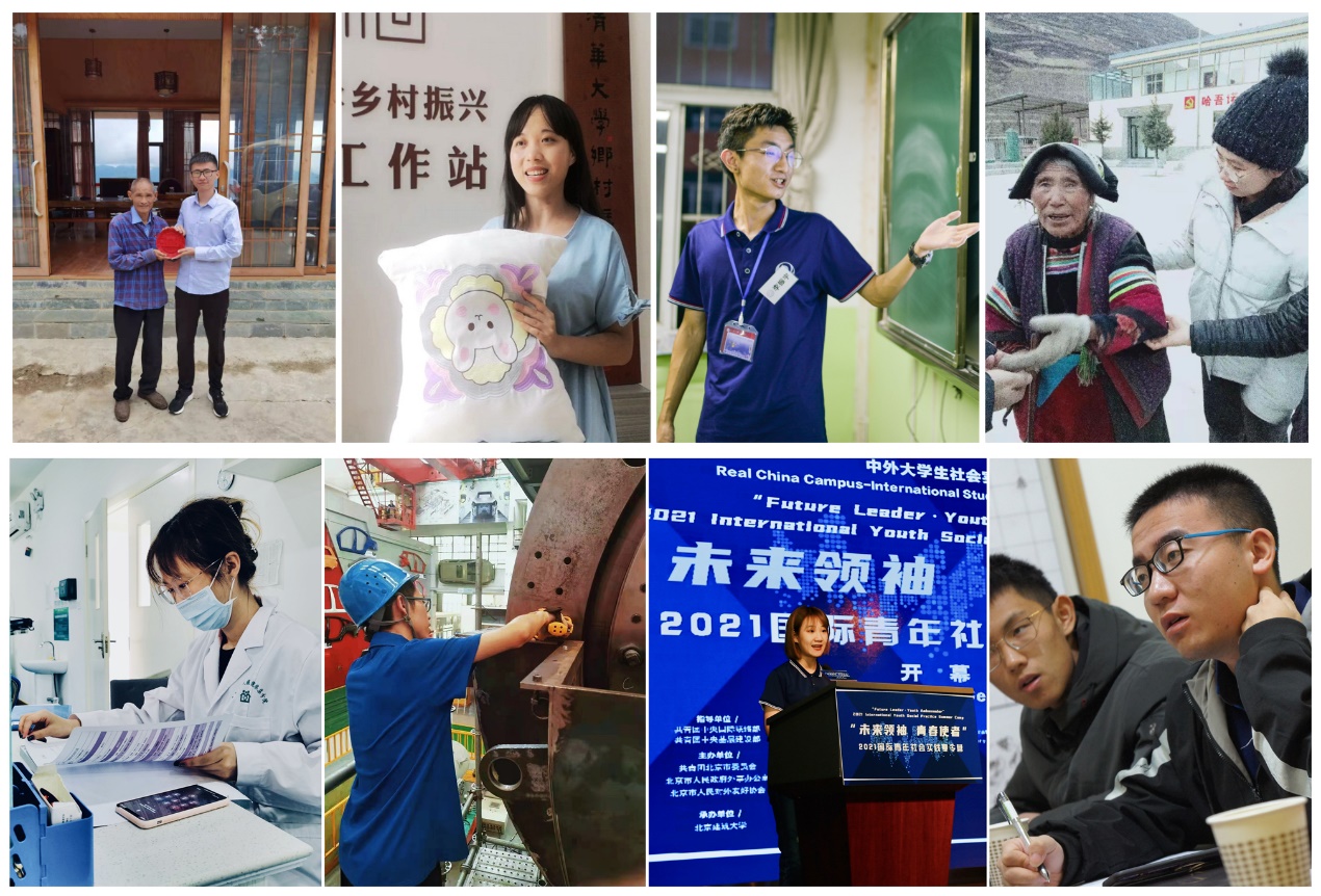 机械系2018级本科生王煜楠心系制造业前沿,在我国制造业部分领域面临“卡脖子”问题的大背景下,他组织“机械力量”专业认知类品牌项目,以脚步度量制造兴邦,以实践培育中国力量。经管学院2019级本科生徐晓宇致力于扶贫调研,她走向祖国边疆,深入了解少数民族地区治理现状及语言教育情况,在调研扶贫效果、探索互联网助农新路径的过程中,产生了“扶贫先扶智”的辩证思考。现在她已应征参军入伍,让青春在党和人民需要的地方继续绽放。社科学院2019级本科生方凌艺关注社会现实,在中国老龄化、少子化的社会背景下展开实践调研,从临终关怀到普惠托育,从中国国情认知到青年命运共同体,她致力于做有家国担当的青年。生命学院2019级本科生蓝翊宁聚焦基层医疗,她在白衣乡路基层医疗公益协会下发起了“乡音喇叭”健康科普实践项目,用乡音传递科学、守护健康,为祖国的基层医疗扶贫事业贡献清华人的力量。
