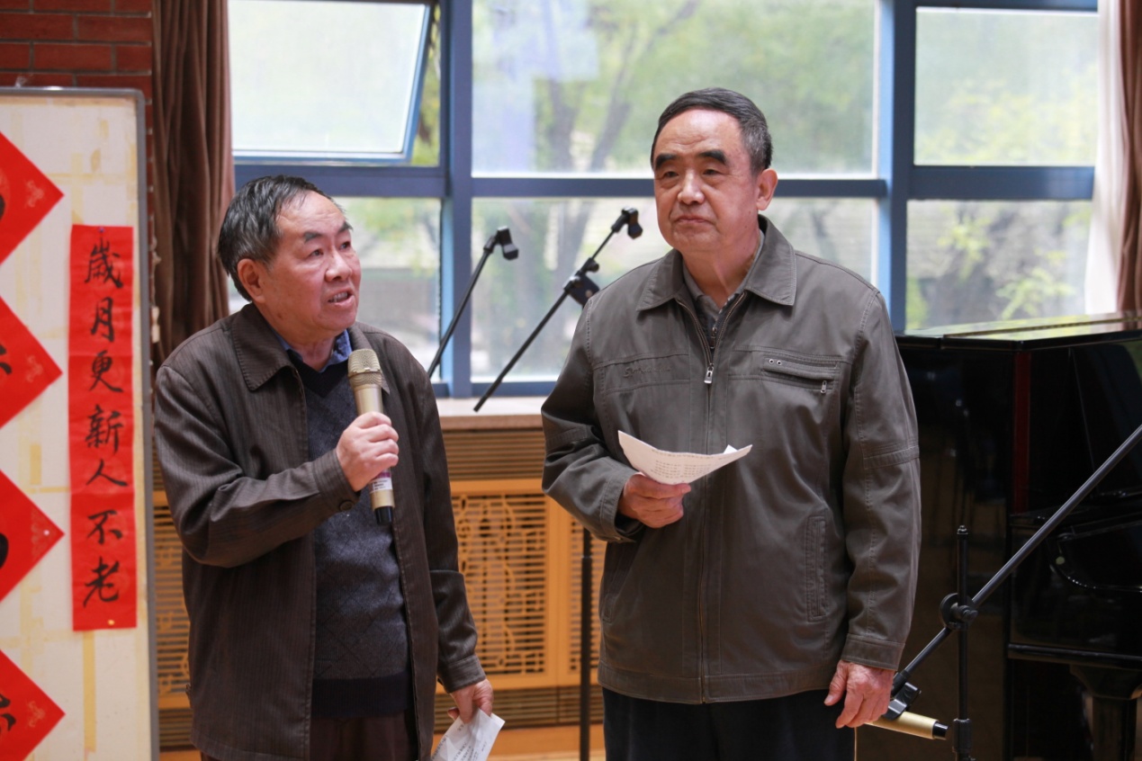 80岁寿星、微电子所杨肇敏老师与同伴现场为大家演奏了钢琴、琵琶协奏曲《梁祝》,离退休教职工京剧队孙秀英等演唱了京剧版《唱支山歌给党听》,荷韵诗社王伯雄、王东光朗诵了专门为活动创作的诗词作品,校学生艺术团合唱团的同学们表演了混声合唱《在希望的田野上》,现场还摆放了校老年书画研究会会员书写的贺寿对联等书法作品,表达了对老同志们的敬意和祝福。
