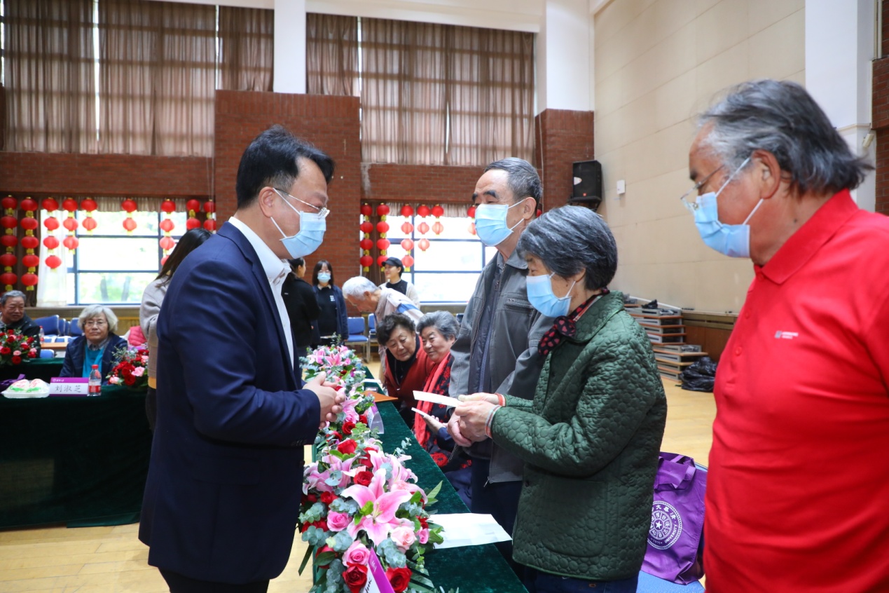 随后,王希勤传达了习近平总书记对老龄工作作出的重要指示精神,表示学校将认真贯彻落实习近平总书记重要指示,大力弘扬孝亲敬老的传统美德,充分利用政府的力量、单位的力量、社区的力量、老同志的力量,共同来推动离退休工作更好地向前发展,努力满足离退休教职工对美好生活的向往和多样化养老服务的需求,安享幸福晚年。王希勤还介绍了学校近年来为老服务的一些举措,并祝福八十寿辰老同志和金婚夫妇们“福如东海长流水,寿比南山不老松”。