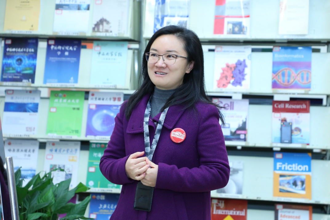 仪式之后,张秋以“爱上图书馆”为主题,给到场的书院学生作了从游Space讲堂第一讲。张秋向大家介绍图书馆历史、发展以及丰富的馆藏、资源和各项服务,鼓励同学们一入大学便要建构起“大图书馆”的概念,充分利用好图书馆各类电子、纸质、音视频资源,充实大学生活,为步入学术殿堂打好基础。