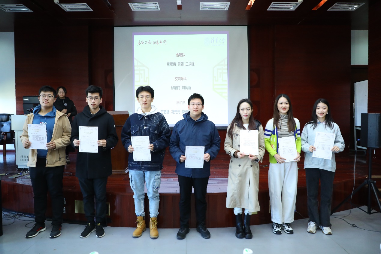 在上一学年度学生艺术团各项工作中,涌现出许多优秀集体与个人,其中部分代表荣获校级荣誉。阎博表彰了学生艺术团荣获2020-2021学年清华大学甲级团支部、优秀学生干部(标兵)、优秀共青团员称号的集体和个人。