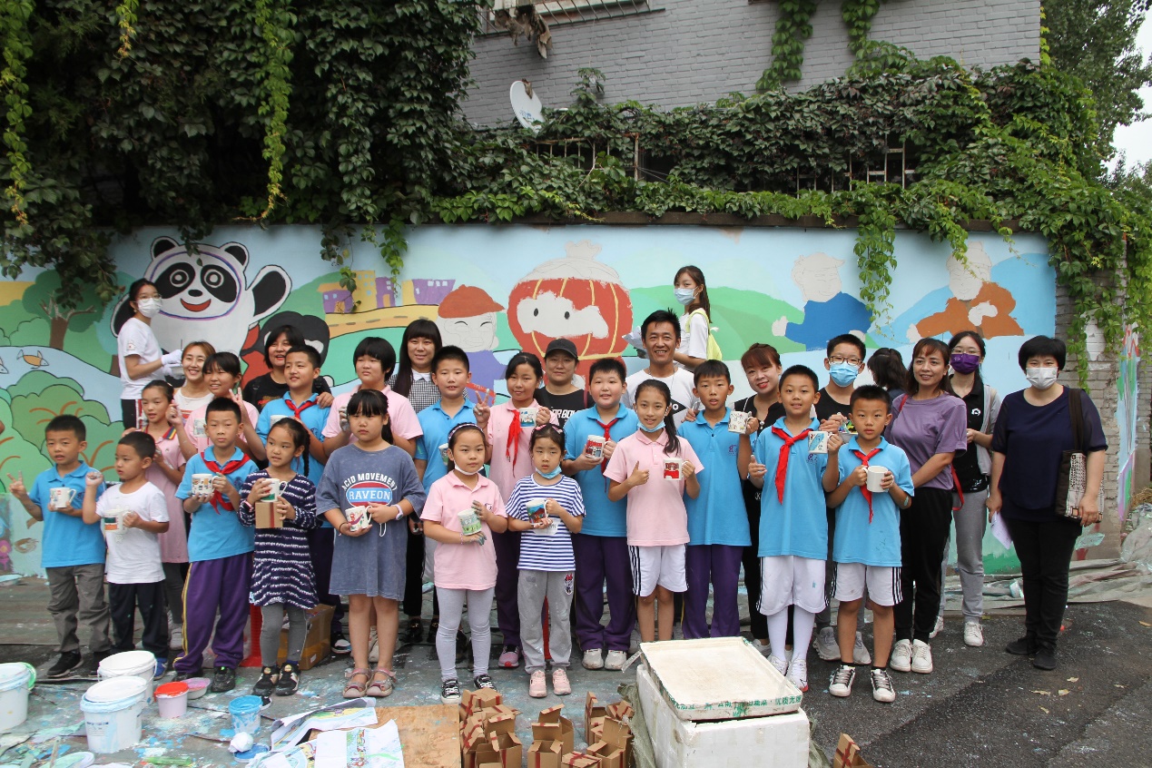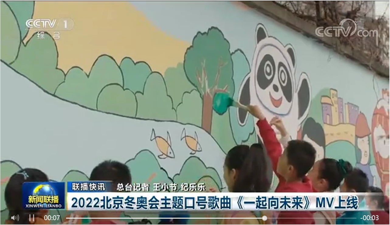 2021年9月11日12日,冬奥社区规划治理课题组联合清华大学粉刷匠工作室协会,组织开展“一起刷墙,绘梦冬奥”活动。课题组根据前期的社区空间环境调查,了解居民活动需求,选定开展社区墙绘的场地,同时开展“社区印象”民意征集活动,广泛征集社区居民的社区印象画作。基于百余幅电厂路小学同学提交的社区印象画作,课题组提炼了山水环境、社区生活、冬奥吉祥物、电厂等社区特色元素,绘制墙绘画稿。墙绘最终选定在八千四小区东侧的斜墙开展,整幅画作全长约三十米,在整体布局上采用了社区印象画作中多次出现的前中后景构图,由高井沟、高井路和三座桥形成的社区艺术骨架串联起冬奥社区丰富的日常生活。近百民社区居民、学生、企业青年志愿者参与其中,大家热情高涨,共同绘出冬奥社区的美好生活。社区墙绘活动场景被2022北京冬奥会主题口号歌曲《一起向未来》MV收录,向世界展现了中国百姓共建共治共享的精神风貌。