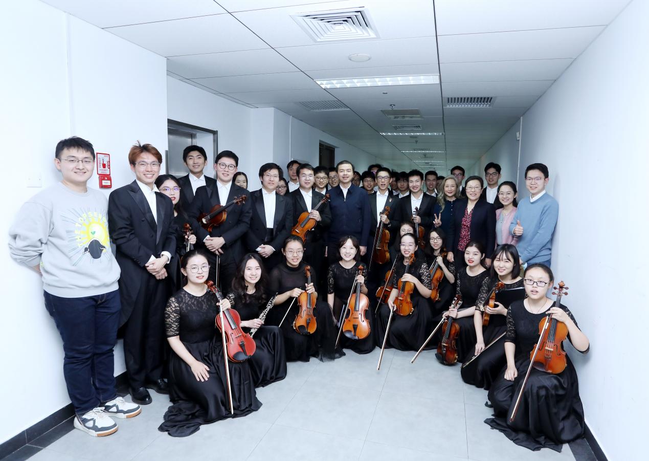 演出间隙,向波涛与合唱队、交响乐队同学交流,充分肯定了两队同学的精彩表现,并对新年音乐会的成功举办表示祝贺。他指出,美育是对学生德智体美劳全面培养的重要维度,清华有着深厚悠久的美育传统,始终注重以美育人、以文化人。他表示,学生艺术团师生在庆祝建党百年专项活动和110周年校庆系列活动中表现突出,希望同学们在校园中更好发挥带动作用与榜样作用,营造良好美育氛围,引领校园文化建设。