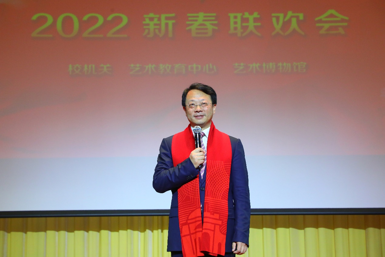 王希勤首先代表学校、校机关行政事务领导小组和校机关党委向校机关广大干部职工、离退休老同志,致以新春的美好祝福。他回顾了2021年隆重庆祝党的百年华诞,深入开展党史学习教育、扎实推进中央巡视整改和开展110校庆系列活动取得的成绩,以及校机关在改革发展中不断提升服务管理水平取得的积极成效。他强调,在新的一年中,广大校机关教职员工要心怀“国之大者”,“致广大而尽精微”,以一往无前的奋斗姿态、昂扬向上的精神状态,在新的赶考路上,为学校的建设和发展作出更大贡献,用实际行动书写更加绚丽的华章,以优异的成绩迎接党的二十大胜利召开。