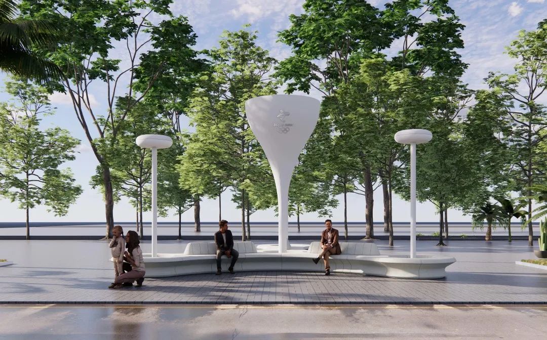 “冬奥庆功广场户外公共设施”造型设计简洁,优雅的比例关系减弱了大型户外设施笨重粗糙的视觉感受,具有令人印象深刻的美学构造。在制造过程中,以创新的方式嵌入座椅自动加热装置以及灯光自动感应系统,利用太阳能供电,完成绿色环保的电力循环,为人们在寒冷季节和夜晚带来舒适体验。