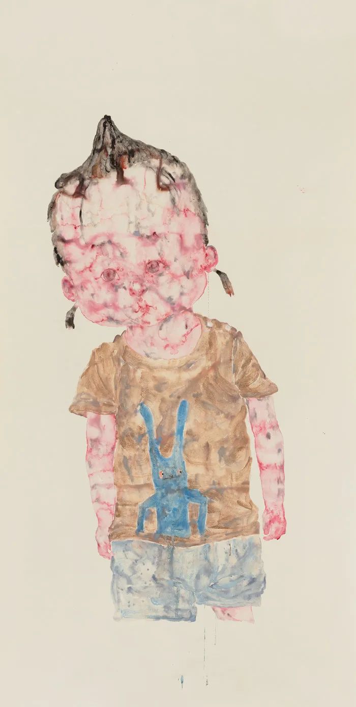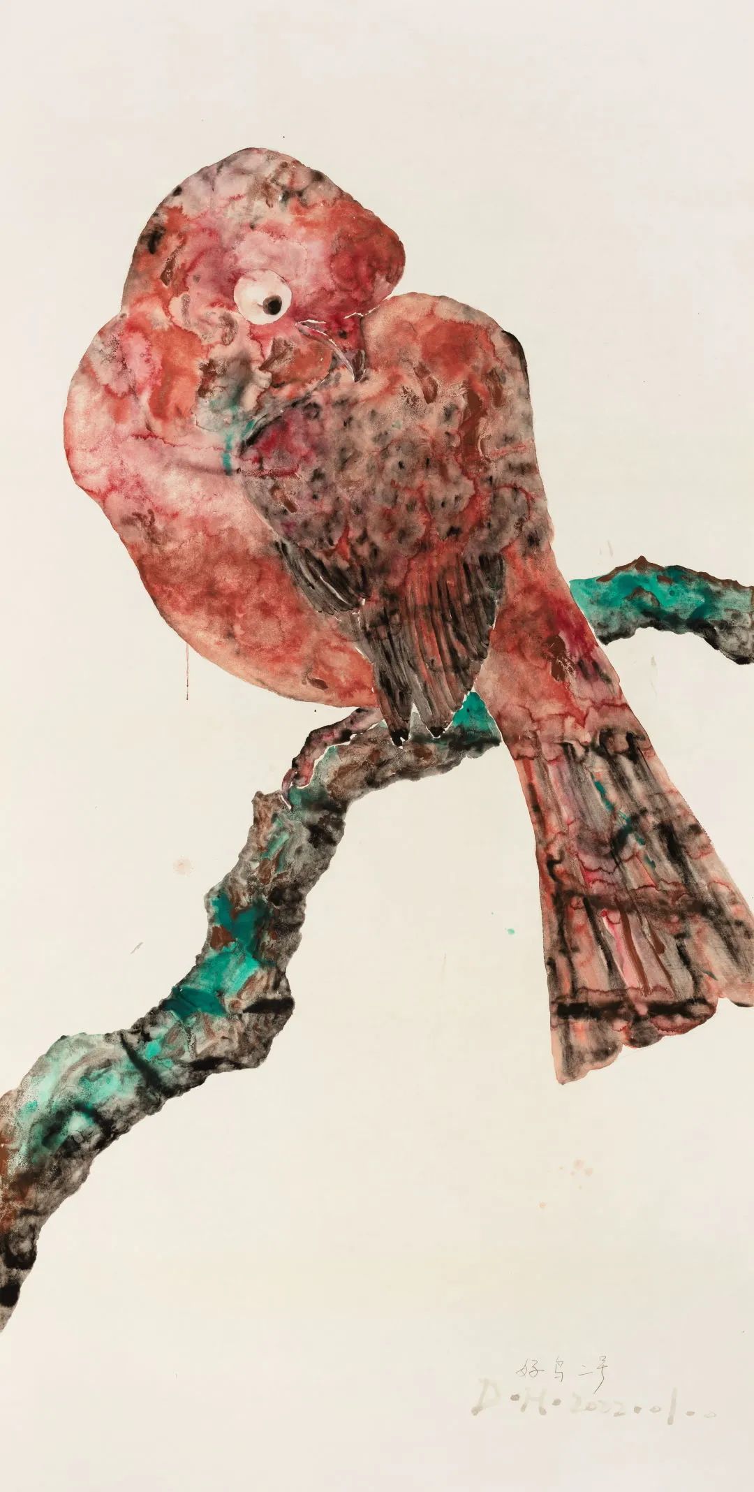 因专攻国画人物的缘故,在丁荭的创作中,无论是早期的《大人体》系列,还是近年来的没骨人物,“人”始终是她创作的重要媒介。她以其独特的观察方式,结合自身的人生经历,感同身受地体悟着遇见的每一个与众不同的生命体,并以此为切入点反思生活,反思生命,反思人性。2021年,丁荭开始了没骨人物的创作,这批作品是她早期《大人体》系列的延续。她直觉地对人特别敏感,并尝试从中寻找能够触碰她神经的东西去表现,这才有了“大人体”系列中“放大”的人体和扭曲的躯干。从精神层面上来看,这些画面借用“人”这个图形为载体,通过艺术家与画面之间的拉扯张力,呈现正在较劲中的“人”的生存状态。