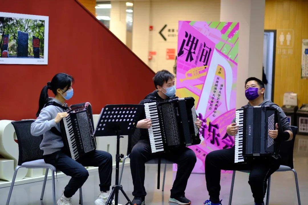 “课间音乐会”系列活动由共青团清华大学委员会、清华大学艺术教育中心主办,清华大学学生艺术团承办。学生艺术团的同学们坚持“从同学中来,到同学中去”,让师生在课间时光零距离欣赏美、体验美、感受美,探索了校园美育浸润的新模式。