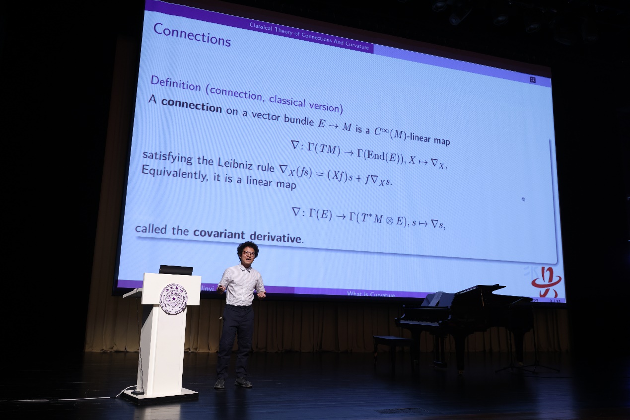 庆典活动开始,数学科学中心的张翼华教授、单芃教授,考切尔·比尔卡尔(Caucher Birkar)教授夫人塔恩·比尔卡尔(Tarn Birkar)女士,求真书院但流金、彭骐飞、王进一、尚鉴桥、许福临、季小轶等同学分别为大家表演了乐器演奏、歌曲演唱等节目;尚鉴桥、许福临、王进一等三位同学分别做了题为《“Trival!”的图灵完备性》《组合博弈论》《什么是曲率》的主题演讲,在展现书院学生艺术修养的同时,也向大家展示了求真学子热爱学术的一面。