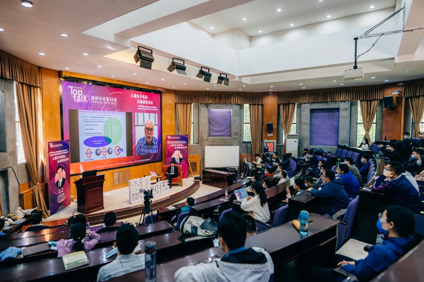 清华新闻网5月7日电 4月30日,以“人造分子机器:从溶液到表面”为主题的第55期“巅峰对话”(TopTalk)在清华大学郑裕彤讲堂举办。2016年诺贝尔化学奖获得者弗雷泽·司徒塔特(Fraser Stoddart)担任活动特邀嘉宾,清华大学化学讲席教授、清华前沿高分子研究中心主任危岩担任对话嘉宾,与清华学子开展了一场关于分子机器的对话。活动由清华大学研究生会主办,化学系研究生分会协办,学生全球胜任力发展指导中心支持。