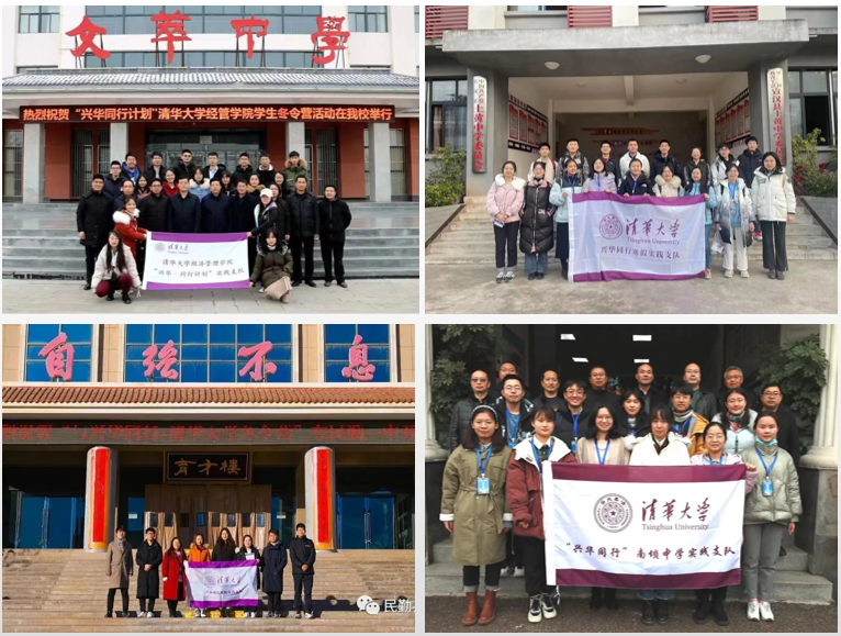 “兴华同行”公益助学实践由经管学院团委主办,组织本科同学利用假期前往中西部贫困地区开展公益支教与实践调研。项目最初针对甘肃兴华青少年助学基金会资助的中学开设,之后社会影响逐步扩展到其他学校。2020年冬,第一支“兴华同行”队伍奔赴甘肃省静宁县开展公益支教。此后,“兴华同行”支队陆续前往甘肃、四川等地多个县市开展支教活动,受到各地师生的一致好评,并入选清华大学品牌实践项目。