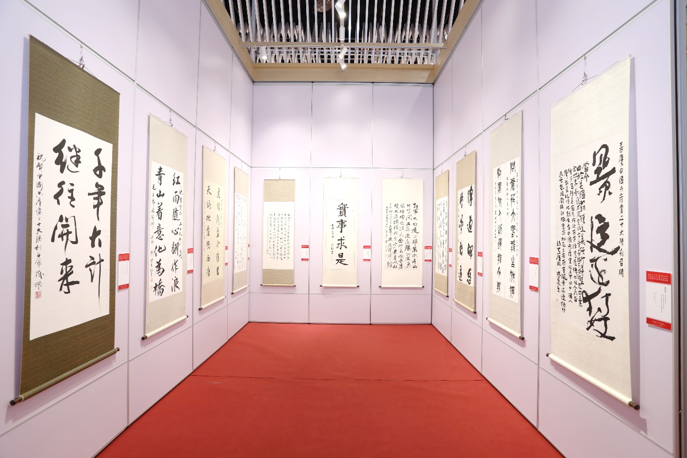 清华新闻网9月25日电(记者 王晓霞 摄影 张玉光 )“二十大开启新航程,双百年展呈强国梦”“聚民心欢庆二十大,强国力再迎一百年”……9月23日上午,“欢庆二十大奋斗新征程:庆祝中国共产党第二十次全国代表大会胜利召开全国教育书法作品邀请展”在清华大学美术学院开幕,展览汇集了164幅全国教育系统的一些老干部、院士、专家、教授和书法教育工作者的力作,旨在表达对党的二十大胜利召开祝贺之情和对党所领导伟大事业的拳拳之心。