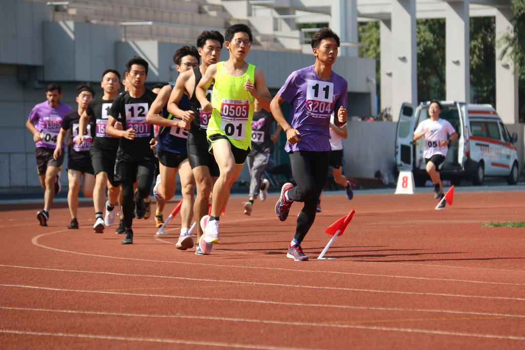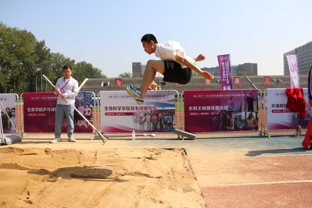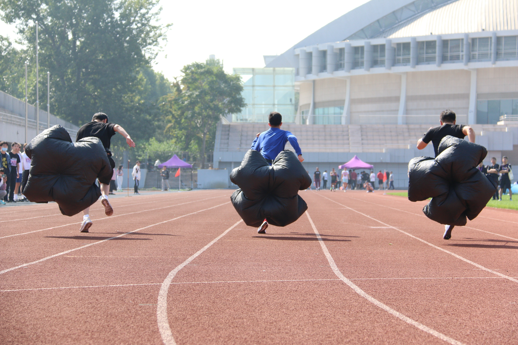 本届研运会竞技比赛部分共设置7项个人竞技比赛、4项集体竞技比赛,包括100米、400米、800米、1500米、50米阻力伞等个人径赛项目,跳高、跳远、实心球掷远等个人田赛项目以及拔河、迎面接力、男女4×100米接力、师生4×100米接力等集体项目。随着第一组迎面接力的同学冲出起跑线,竞技比赛环节正式打响。比赛中,来自40个院系的23位老师和693位研究生在研运会的赛场上各显身手,同台竞技,挥洒青春汗水,展示强健体魄,为了院系的荣誉共同拼搏,用实际行动践行“无体育,不清华”的清华体育精神。