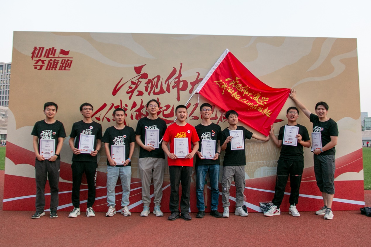 初心夺旗跑是今年的创新项目,在借鉴吸收上世纪清华园中夺旗赛形式的同时,融合广受同学喜爱的定向越野元素,使传统的体育项目在新时代再次焕发活力。下午五时,来自40个院系的1000余名师生身着定制文化衫,佩戴头饰、手环等特色饰品,从校园各处出发,前往校史馆“立德立言,无问西东”站点、西湖游泳池“在青春的赛道上奋力奔跑”站点、清华日晷“干惊天动地事,做隐姓埋名人”站点、情人坡“爱国奉献,追求卓越”站点、西体育馆“立大志,明大德,成大才,担大任”站点、东操跑廊雕塑“争取至少为祖国健康工作五十年”站点,通过和工作人员对接“请党放心,强国有我”等口令,收集贴纸和寻旗碎片,完成打卡后返回东操寻找大旗。最终,机械系的同学们率先夺得“实现伟大复兴,从我做起,从现在做起”大旗。完成活动的同学们在东操领取完赛证书并同特色展板、发光拱门合影留念,现场气氛十分热烈。汗水、光影和“实现伟大复兴,我从做起,从现在做起”的口号让清华园充满了激情与欢乐。