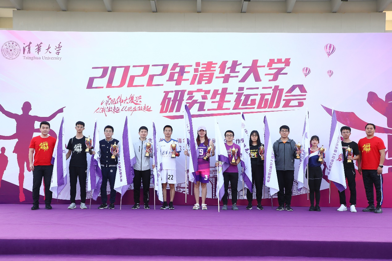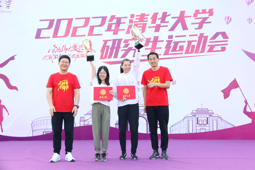 为营造“无体育,不清华”的校园体育氛围,本届研运会力求将体育运动的竞技性、趣味性和群众性有机结合,共设置竞技比赛、趣味嘉年华及初心夺旗跑三大板块,为广大在校师生提供一个精彩纷呈的清华体育大舞台。颁奖环节中,校体育部主任刘波、校党委研究生工作部部长赵岑为甲乙组团体第一名颁奖,校体育部副主任周放、校党委研究生工作部副部长兰旻为甲乙组团体第二、三名颁奖,校团委副书记、研究生团委书记金雨浩,校体育部教学办公室主任冯宏鹏为获得“清华大学2021-2022学年度十佳体育俱乐部”称号的俱乐部颁发奖杯并授旗。