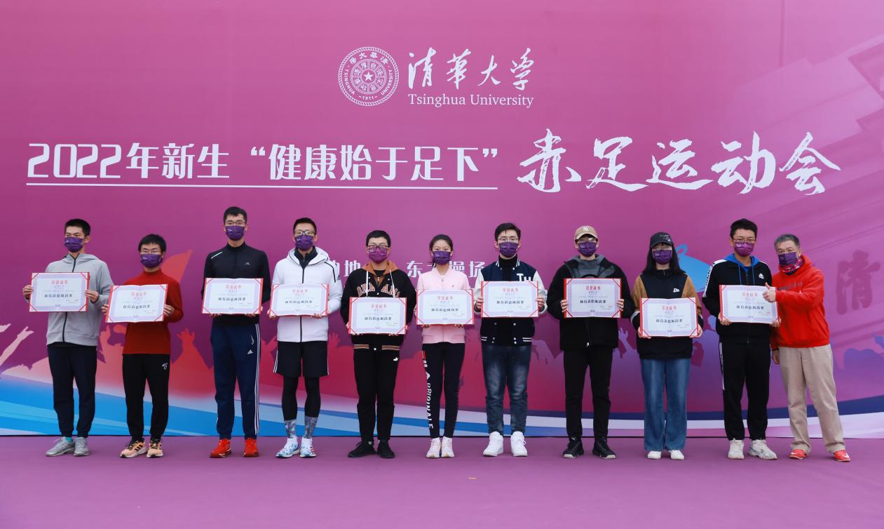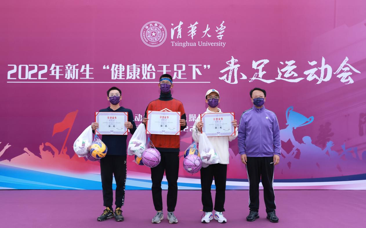 清华新闻网10月10日电(记者 江盛盈 摄影 石加东 摄像 曹庆庆)10月8日下午,2022级新生“健康始于足下”赤足运动会颁奖仪式在东大操场举行。校长王希勤、校党委副书记过勇,校务委员会副主任、校体委主任史宗恺,以及体育部、校团委等相关负责人出席。颁奖仪式由校团委副书记于朔主持。共35个院系4804人次参加本次运动会。