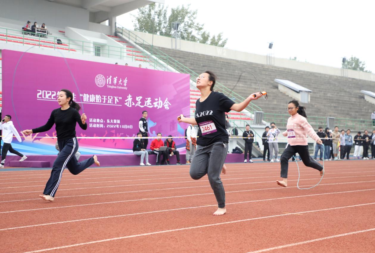 清华大学自1997年开始举办新生赤足运动会,是大一新生参加的首个以班级为单位参赛、报名人数多、覆盖项目广、趣味性强、特色突出的运动会,运动会上所有参赛学生绝大部分项目要赤脚上阵。