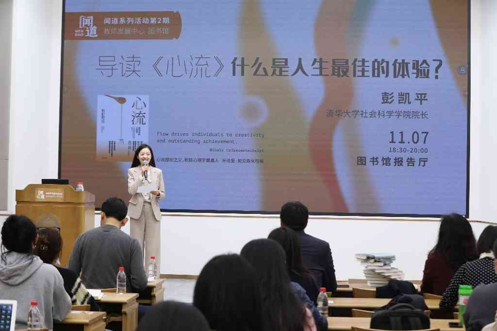 清华新闻网11月9日电 11月7日晚,清华大学“闻道”系列第二场活动在图书馆报告厅举办。清华大学社会科学学院院长彭凯平教授作为荐读人,以“什么是人生的最佳体验”为题,导读了美国心理学家米哈里·契克森米哈赖的著作《心流》。清华大学副校长、教师发展中心主任李路明出席活动并致辞。