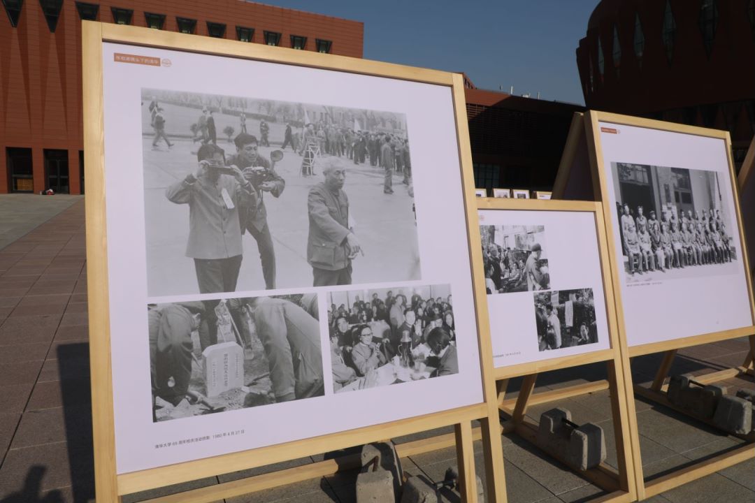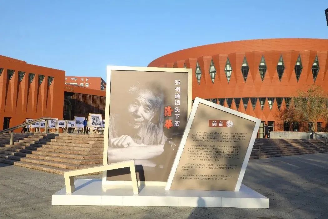 “张祖道镜头下的清华”展览则充分利用新清华学堂和校史馆外宽阔的具有一定高差的广场平台,因地制宜,通过合理的空间布局规划,巧妙地展示出张祖道高超的摄影艺术造诣。展览从张祖道捐赠给清华大学档案馆的4万余张照片中精选出210幅作品,分为校庆纪实、校园风光、师生风貌、学校活动、名人校友等五个板块,以纵跨60年的时间维度呈现不同年代的清华风貌与师生群像。展览中时间最早的照片,为1945年秋季的西南联大学生合影,最晚的照片是本世纪初张祖道拍摄的清华90周年校庆等场景。展出作品以黑白照片为主,部分作品还保留了他亲手书写的图片说明。