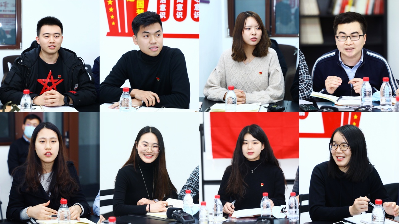 博士生讲师团功能型党支部书记、马克思主义学院博士生王琦煜从党支部的组织建设、职责任务、党员成长、未来发展等方面介绍了党支部的基本情况。讲师团团长、精仪系硕士生林晨汇报了讲师团的整体工作,重点介绍了讲师团围绕党的十九届五中全会精神开展的宣讲工作及成效。建筑学院博士生翟洪雯从“文化强国”的角度切入,指出工业遗产活化利用对推进我国文化建设的意义,并表示自己将努力把科学研究充分与国家发展战略相结合,进一步思考如何更好地保留和利用我国的城乡遗产,促进城市建设高质量发展。环境学院博士生张宇婷结合学科背景和专业所长,通过学习全会公报中“生态文明建设实现新进步”等全新表述,进一步明确了做好生态文明建设宣讲的未来方向。经管学院博士生周逸美分享了自己在疫情期间参加抗“疫”宣讲、帮助身边人做好防疫心理建设的经历,她深切感受到我国社会主义制度集中力量办大事的优势,体会到宣讲能够为青年传递的强大榜样力量。马克思主义学院博士生宋金谈到,学习全会精神时应当抓住“党的领导”这一个主体和“贯彻新发展理念、把握新发展阶段以及推动新发展格局”这三个认识,宣讲时应当坚持“以情动人”和“以理服人”相结合。