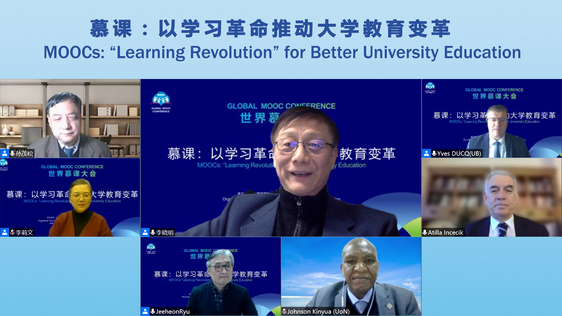 圆桌论坛环节由北京大学李晓明教授主持。清华大学教授孙茂松、北京外国语大学教授李莉文、法国波尔多大学教授伊夫·杜琦(Yves Ducq)、英国思特克莱德大学教授阿提拉·因赛斯克(Atilla Incecik)、韩国春南国立大学教授瑞吉恩(Jeeheon Ryu)以及肯尼亚内罗毕大学教授约翰逊·艾瑞·金约阿(Johnson Ireri Kinyua)围绕“应对疫情和后疫情新常态下的在线教育合作”进行了交流讨论。