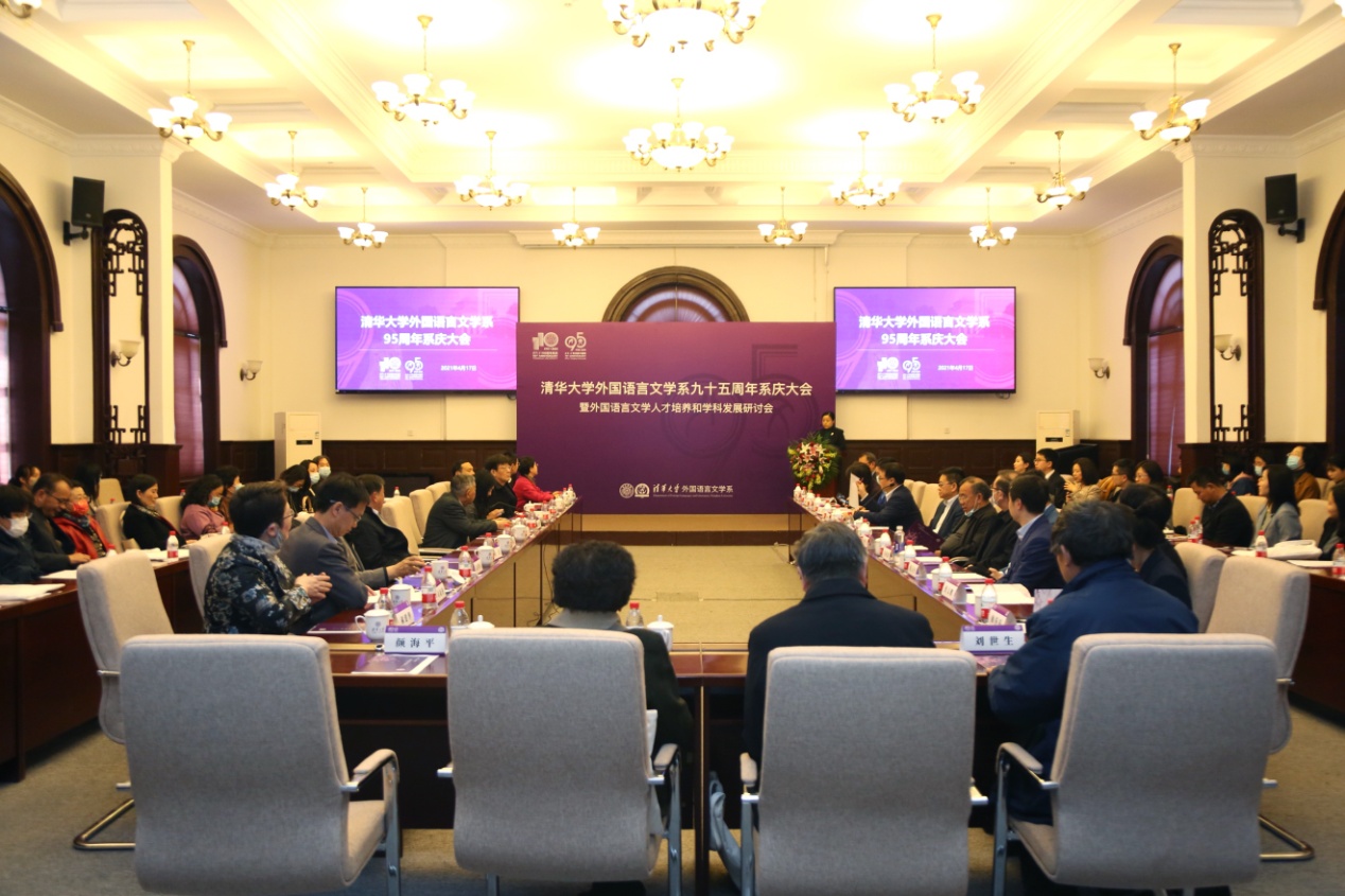 清华新闻网4月20日电(通讯员 沙克尔江)在清华大学即将迎来110周年校庆之际,清华大学外国语言文学系于4月17日上午在清华大学第二教学楼会议室举行了建系95周年庆祝大会暨外国语言文学人才培养和学科发展研讨会。副校长彭刚、文科处处长杨永恒、人文学院院长万俊人、人文学院党委书记孙明君、外文系党总支书记兼主任吴霞、语言教学中心主任吴运新、人文学院院务会成员及来自北京大学、北京外国语大学、中国人民大学、北京师范大学、北京航空航天大学、对外经济贸易大学、北京语言大学、北京科技大学、北京理工大学、中国传媒大学、北京第二外国语学院等多所国内著名高校的外语学院负责人,来自各行业资深的系友代表、国内著名出版社及全体外文系师生员工等80余人出席了系庆大会。大会由外文系党总支副书记赵蓉主持。