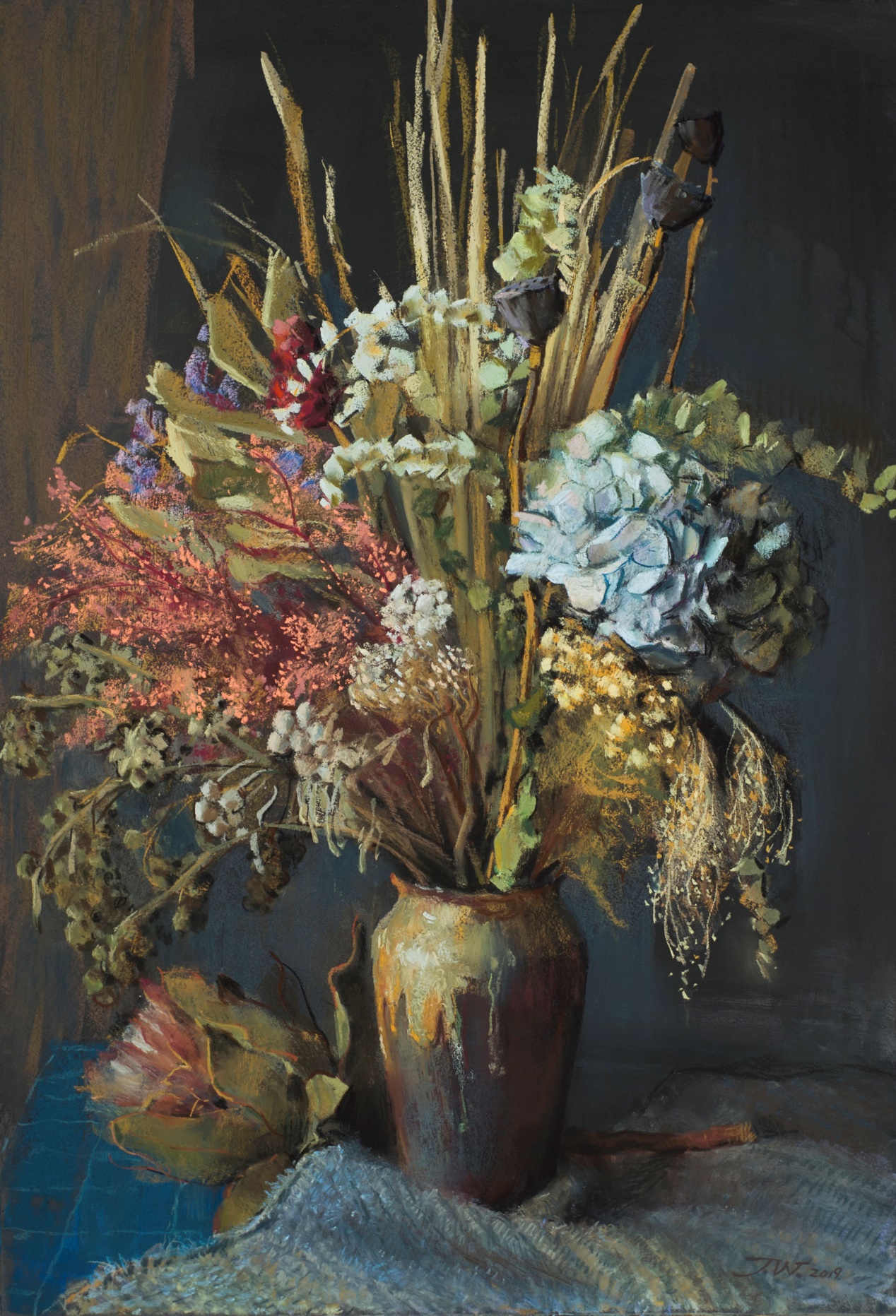 贾巍 《百花齐放》纸上色粉