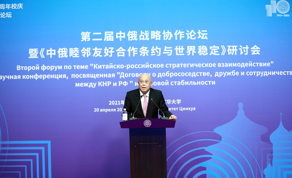 清华新闻网4月22日电 4月20日下午,正值清华大学110周年校庆之际,由清华大学俄罗斯研究院主办的第二届中俄战略协作论坛暨《中俄睦邻友好合作条约与世界稳定》研讨会举行。清华大学校务委员会副主任袁驷出席论坛并致辞,中联部原副部长周力、中国驻俄罗斯前海陆空武官王海运少将、外交部欧亚司毛文翀参赞、中国俄罗斯东欧中亚学会会长李永全、中国社科院俄罗斯东欧中亚研究所所长孙壮志,莫斯科大学国家行政学院第一副院长弗拉基米尔•叶廖明(Vladimir Eremin)、俄罗斯外交部莫斯科国际关系学院伊戈尔•杰尼索夫(Igor Denisov)、莫斯科友谊大学阿列克•季莫菲耶夫(Oleg Timofeev)、俄罗斯科学院远东研究所弗拉基米尔•彼特罗夫斯基(Vladimir Petrovskiy)、莫斯科卡内基中心亚历山大•加布耶夫(Alexander Gabuev)等出席并作主旨发言。