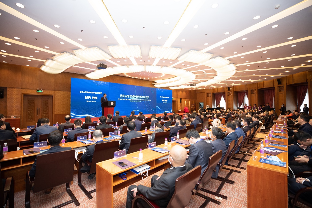 清华大学集成电路学院院长吴华强回顾了清华大学面向国家战略需求,建设一流学科、培养一流人才的历史传承,并表示,清华大学成立集成电路学院,符合当下技术发展、产业变革的大趋势,与党和国家重大战略丝丝相扣。集成电路学院将以更创新、更开放、更坚定的步伐迈向新征程,肩负时代使命,贯彻“三位一体”教育理念,为党育人、为国育才,勇于攻克强国关键核心技术,为清华大学“双一流”建设,为我国集成电路事业发展,为人类社会进步作出更大贡献。