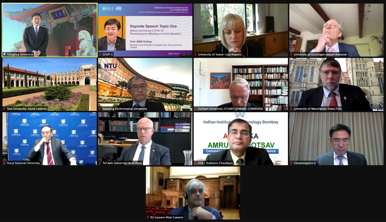 清华新闻网4月23日电(通讯员 汪潇潇 宁潇贤 谷雨萱 周骁然 胡筱箐)北京时间4月22日晚,2021大学校长全球论坛第三场分论坛“重思在线教育的未来与新使命(Rethinking the Future and New Mission of Online Education)”成功举办。来自中国、美国、法国、俄罗斯、英国、意大利、以色列、印度、韩国、新加坡等17个国家的19所高校共计80多位代表相聚“云端”,与包括国内外大学校长在内的25位嘉宾,以主旨报告和圆桌讨论两种形式,就各国在线教育的政策与实践进行了充分交流,深入探讨在线教育的巨大潜力与未来使命,共同展望新常态下高等教育的发展路径与创新变革。