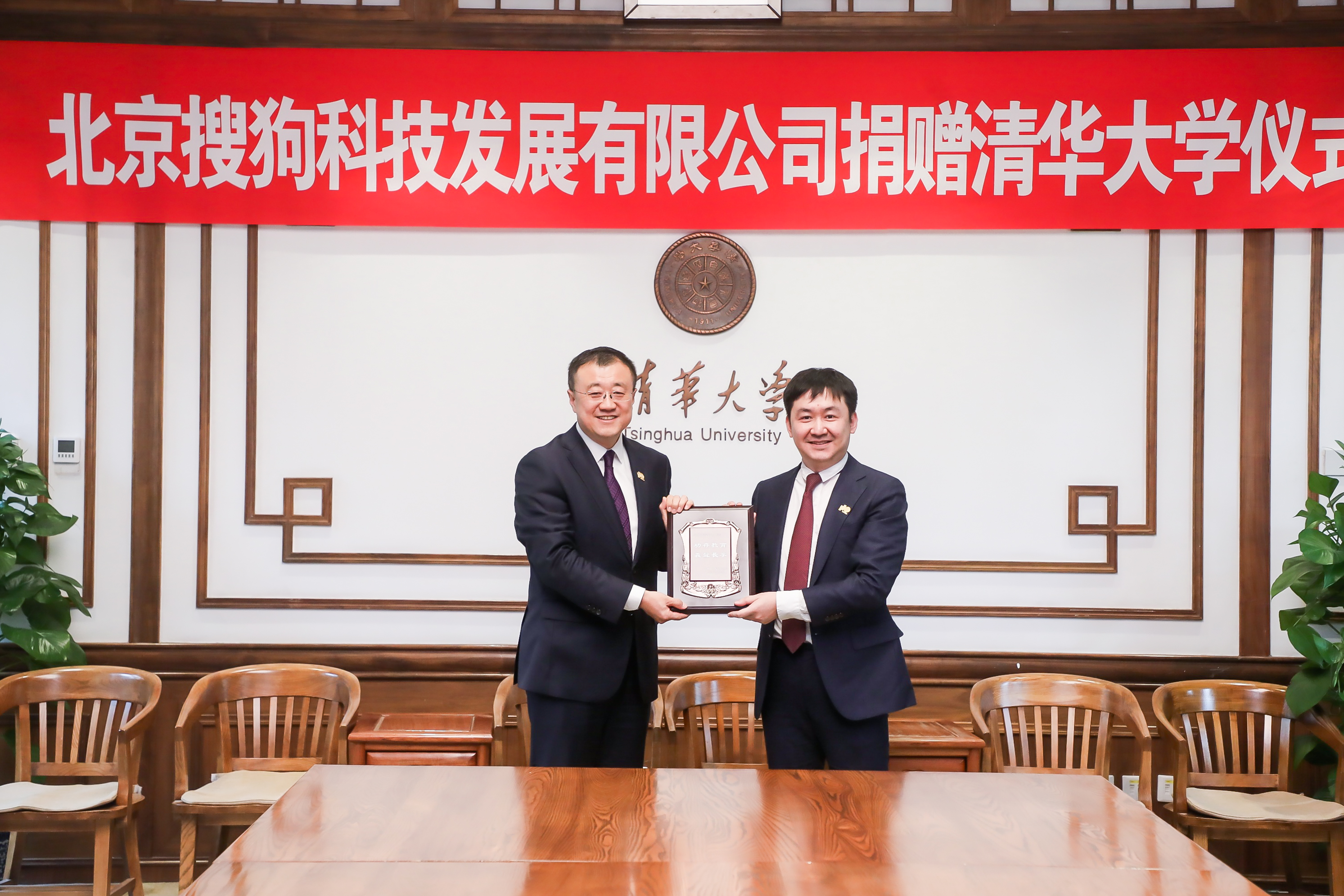 捐赠仪式在清华大学工字厅举行。清华大学计算机系1996级校友、搜狗CEO王小川,1998级校友、搜狗CTO杨洪涛,搜狗CFO周雯娟,电子工程系2002级校友、搜狗高级副总裁许静芳;清华大学副校长、教育基金会理事长杨斌,中国工程院院士、清华大学计算机系教授吴建平,人事处处长王宏伟,计算机系主任尹霞,计算机系党委书记刘奕群,计算机系副书记贾珈等出席捐赠仪式。清华大学教育基金会秘书长袁桅主持仪式。捐赠仪式结束后,清华大学党委书记陈旭会见了王小川校友和搜狗科技团队。