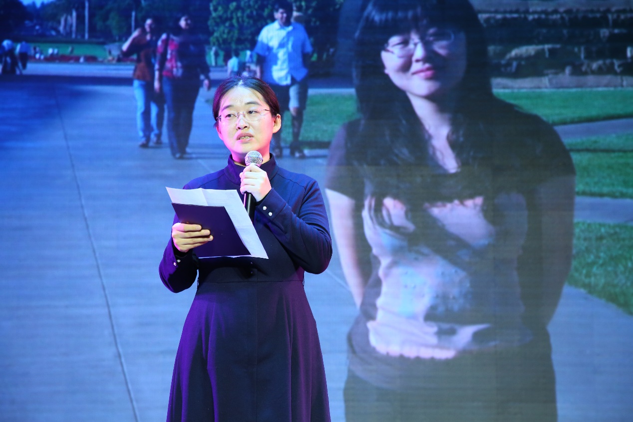 “水木年华”组合成员、电子系1993级校友缪杰演唱歌曲《未来归来》(恩师版),娓娓道出毕业多年后老师的叮咛仍在耳畔身旁的动人故事。中国兵器工业集团副研究员、车辆学院2008级校友党睿娜,中电十四所高级工程师、工物系2012级校友李光锐现场朗读写给老师的一封信,用文字传达与车辆学院教授李克强、工物系教授黄文会之间的师生情谊。中国工程院院士、化工系教授金涌和人文学院教授金丽华作为从教50年以上的教师代表,向全场师生分享了教书育人五十余载的感悟与回忆,化工系教授魏飞和环境学院杜文涛老师分别作为两位老教师的学生,为两位老师献上红围巾和鲜花,表达对清华园里辛勤付出教育工作者的崇高敬意和尊师重教之情。