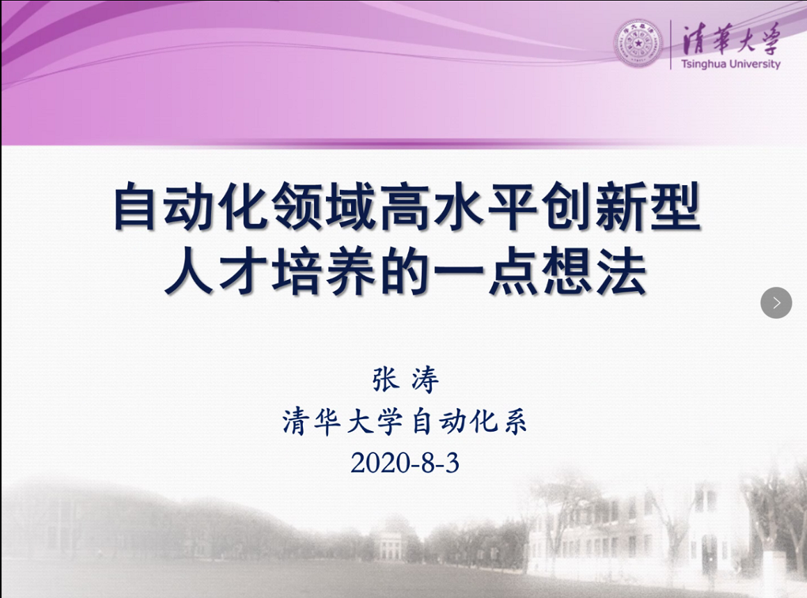 张涛作了关于“自动化领域高水平创新型人才培养的一点想法”的重点发言。他提到四个方面的内容。一是自动化系领域高水平创新人才培养具有时代特点。自动化系自建系开始就一直面向国家的重大需求和战略目标开展研究生培养,包括最初的计算机集成制造国家工程研究中心的建立,到后来的生物信息学学科方向的设立以及现在的清华大学智能无人系统研究中心和清华大学脑与认知科学研究院的建立,都充分体现了自动化系的研究生培养和学科发展、国家重大需求紧密结合的特点。此外,自动化系在研究生培养过程中,不断创新教育教学体制,引进国际一流师资力量,其中讲席教授组在自动化系高水平研究生人才培养中发挥了重要作用。随着交叉学科的不断发展,交叉性人才培养成为自动化系的又一个重要特色。自动化系培养的人才不是面向一个特定行业,而是在不同领域发挥重要作用。近些年自动化系加大了系友工作力度,通过对毕业生的行业分布、行业作用发挥情况和就业前景的调研分析,反思和改进人才培养。二是课程体系与培养模式的改革创新在持续推进。从2011年开始,自动化系率先在全校推动“提高研究生核心课程难度、深度和挑战度”的教学改革,建成了《模式识别》《矩阵分析与应用》《凸优化》《统计学方法及其应用》《概率图模型理论与基础》《系统辨识理论与实践》等多门研究生核心“硬课”,有力地促进了研究生科研能力提升和创新能力培养,也吸引了校内理工科院系学生选修。同时,自动化系在不断探索硕士研究生培养模式的改革与创新,创新了“清华大学大数据全日制工程硕士专业学位项目”建设。多年来,自动化系一直在积极探索研究生国际化培养的有效路径。未来自动化系需要进一步探索本研贯通的课程体系建设和人才培养模式。三是科教、产教融合与实践教学具有重大意义。研究生的培养一定要坚持两个结合,一个是把科研平台和教学平台结合,把学生参与科研作为教学的有效形式,以高水平的科学研究支撑高层次的人才培养;另一个是产业平台和实践教学平台结合,推动学科建设和社会经济发展的密切结合,打造产学研协同育人的广阔平台。四是研究生培养工作还需要进一步积极探索。研究生课程如何做减法,如何通过加强研究生培养环节管理促进高水平创新人才培养,如何进一步提高博士生导师的培养水平,如何有效落实不唯论文的研究生学位创新标准,这些都是在未来的研究生培养工作中需要进一步积极探索的问题。