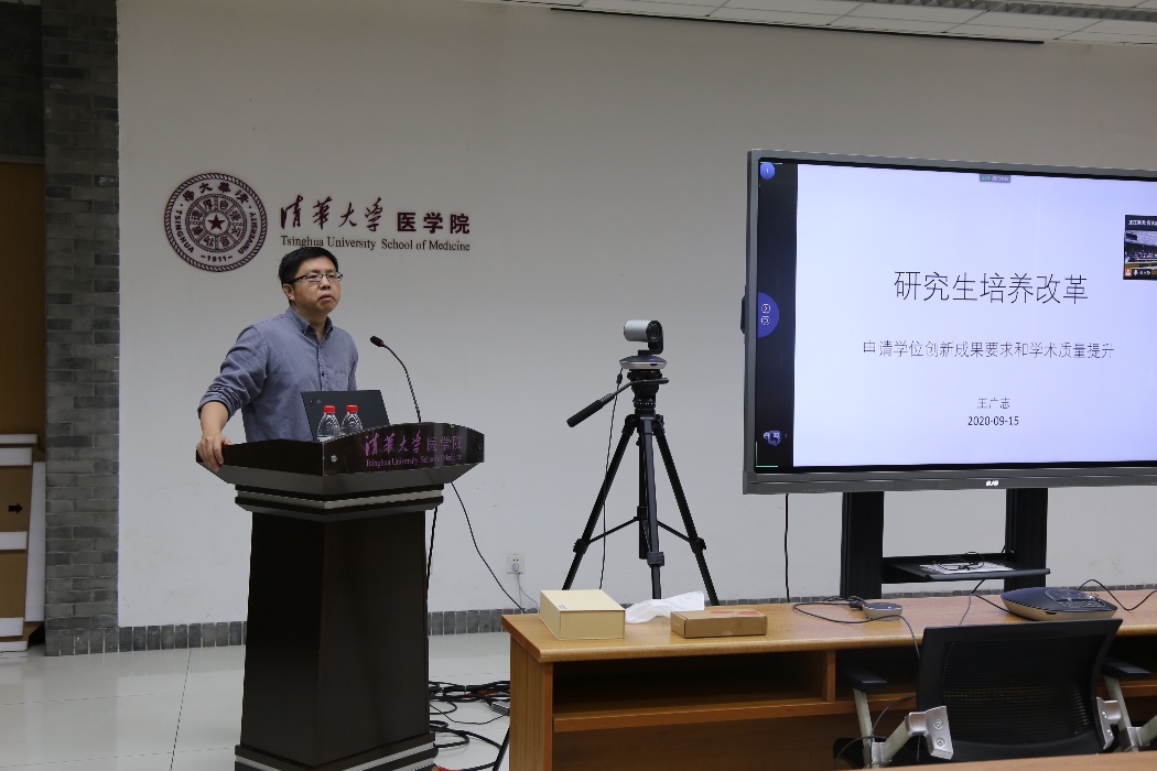王广志以“加强研究生培养质量,切实推进研究生教育改革”为主题作了分享。他指出,习近平总书记关于研究生教育的重要指示精神体现了国家对研究生教育的高度重视。培养创新性人才是清华大学义不容辞的使命,他回顾了学校自2019年4月开始启动的学术评价体系改革和研究生申请学位创新成果标准的制定工作。王广志强调要进一步完善学术评价制度的指南作用,针对医学院-药学院不同的专业方向,要精准施策,制定符合本学科创新发展实际的评价标准,使之能够更好地激励研究生们沉下心来,做真正引领时代的创新研究。