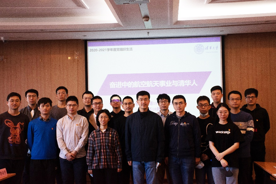 1.借助名师资源,提高理论水平。清华大学优秀的教师队伍,可以为党支部开展理论学习和思想教育提供关键指导。党支部加强与院系党委老师的联络,邀请院长、党委书记等参与支部的组织生活,以党课、座谈等形式,不断加强支部成员的理论学习,提升支部成员的思想政治素质。围绕着神舟飞天、全国两会等时政热点,支部邀请校党委副书记过勇、全国政协委员朴英等老师,开展专题学习讨论,引导同学们投身航空航天事业。结合自身专业特点,组织聆听叶培建、过增元等航空航天领域院士大家的主题讲座,启发报国情怀。