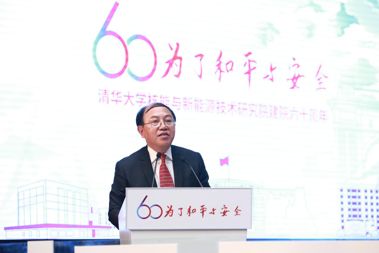 陈旭在致辞中代表学校向核研院全体师生员工和校友致以热烈的祝贺,向长期以来关心支持核研院以及清华大学建设发展的各界人士致以衷心的感谢。陈旭指出,清华大学核研院为国而生,为国而长。60年来,核研院坚持瞄准国际学科前沿,坚持服务国家重大战略需求,取得了一批国内首创、世界先进的科研成果。核研院60年走过的历程可以用“一种精神、一支团队、一面旗帜”来概括,核研院60年走过的路是一条清华科研人员爱国奉献、追求卓越之路,是一条勇于创新、坚韧不拔之路,是一条把论文写在祖国大地上的成功之路。