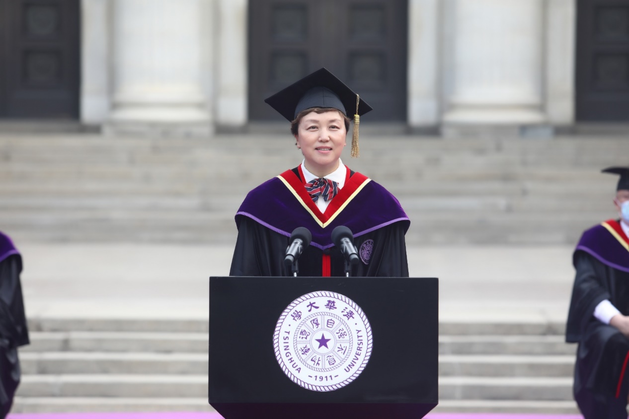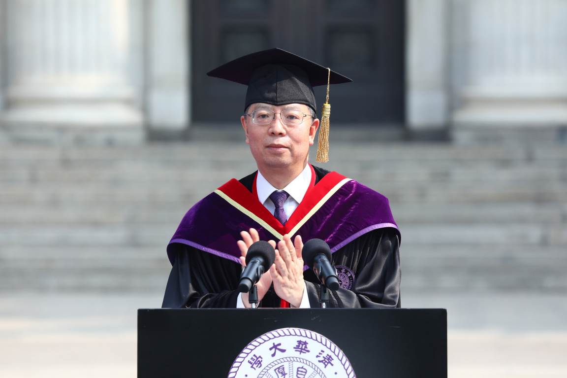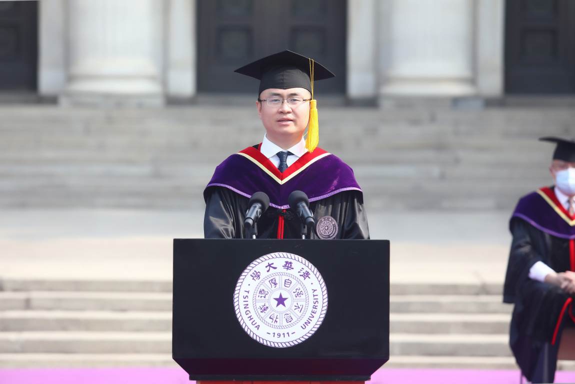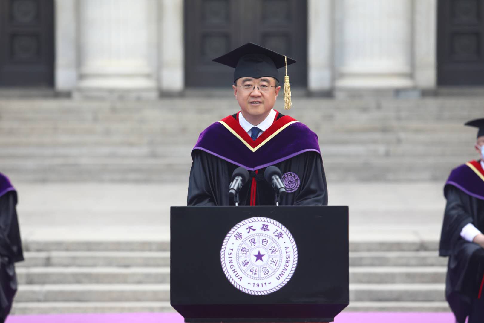 在热烈的掌声中,清华大学校长、校学位评定委员会主席邱勇走上前台,寄语毕业生们“用一生去坚守不可放弃的职责”。