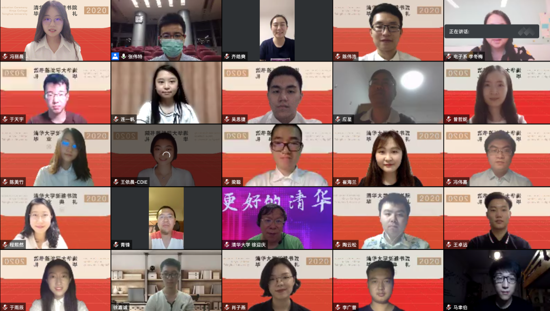 新雅书院副院长赵晓力通报了毕业和学位授予情况。新雅2016级共45名学生满足2020年毕业要求,授予理学学士5人、工学学士14人、法学学士13人、经济学学士12人、管理学学士1人。其中章钊(物理学专业)、陈伟浩(计算机科学与技术专业)、 李骁原 (政治学、经济学与哲学专业)、姚天恩(经济与金融专业)、武家和(经济与金融专业)等5人获评清华大学优秀毕业论文。