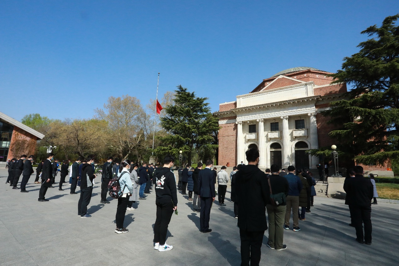 为表达全国各族人民对抗击新冠肺炎疫情斗争牺牲烈士和逝世同胞的深切哀悼,国务院决定于2020年4月4日举行全国性哀悼活动。4月4日上午,清华大学举行哀悼暨英烈碑祭扫活动,下半旗志哀。大礼堂前,五星红旗伴随着国歌声冉冉升至旗杆杆顶,在短暂的定格后开始缓缓下降,现场氛围十分凝重。10时整,防空警报声在清华园上空响起,全场肃立,为抗击疫情和国家民族解放的伟大事业所英勇牺牲的烈士前辈和逝世同胞们默哀3分钟。