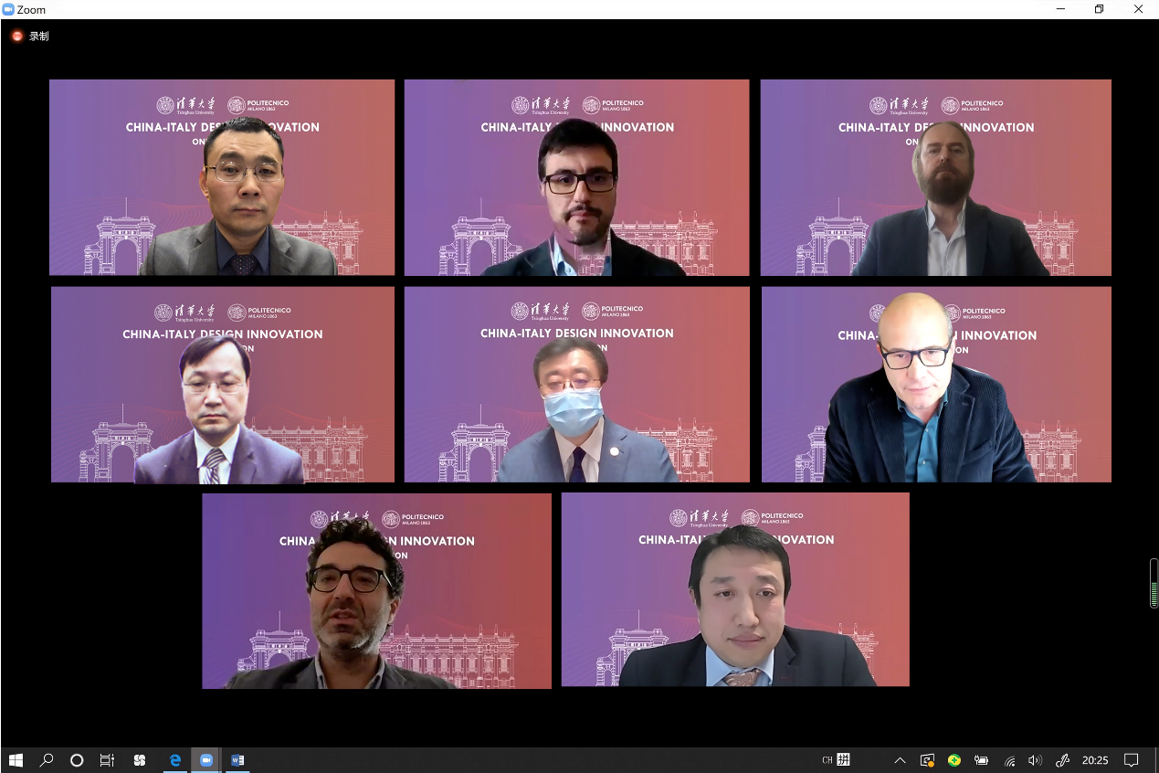 在主旨发言环节中,米兰理工大学管理学院设计策略专业教授克劳迪奥·德雷拉(Claudio Dell’Era),清华大学未来实验室首席研究员马兆远,清华大学中意设计创新基地智慧城市研究生项目负责人、雷丁大学亨利商学院信息学研究中心客座教授克里斯托弗·格兰特·柯万(Christopher Grant Kirwan)、米兰理工大学设计学院教授维南齐奥·阿尔奎拉(Venanzio Arquilla)分别就数字化转型中的设计思维、创意与人工智能、智慧城市的服务设计如何支持都市弹性、从产品到以生活为中心的设计——复杂产品服务生态系统的新挑战和机遇为主题作学术报告。此外,付志勇还介绍了疫情期间清华大学和米兰理工大学共同发起的“志愿设计、联合抗疫”行动有关情况。该项目通过设计和创作等方式探索防疫经验,吸引了自清华大学、米兰理工大学和海内外其他设计院校的学生以及企业设计师共200多人积极参与。