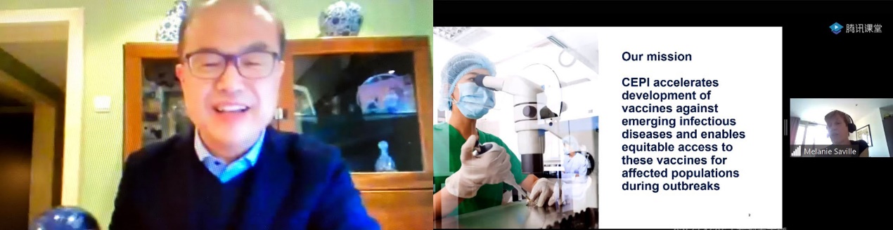 清华大学医学院教授张林琦(左)、流行病防范创新联盟(CEPI)Melanie Saville博士(右)作报告