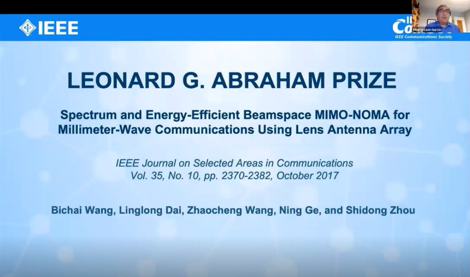 清华电子系师生获2020年IEEE通信学会伦纳德•亚伯拉罕奖