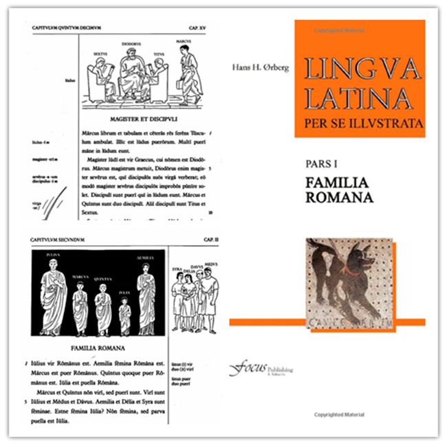 为了提高学生们对拉丁文的兴趣,增强大家的信心,赵元老师选择了古典语文学家汉斯·亨宁·奥尔伯格(Hans H. Orberg)编著的全拉丁文课本《自明拉丁文(第一册):罗马家庭》作为教材(Lingua Latina per se Illustrata: Pars Prima – Familia Romana)。这本书围绕公元二世纪一个普通罗马人的家庭生活展开,通过生动有趣的故事,将拉丁文基础语法、词汇以及日常罗马文化呈现给学生。除了语言知识之外,学生还能了解到古罗马生活习俗,罗马帝国时期的天文、地理、教育、军事、航海和货币等领域的知识,并初步接触一些拉丁文学作品和歌曲。赵老师说,“这套教材与其他拉丁文教材最显著的不同在于,从第一课开始,学生就能接触到成篇的拉丁文文本,而且在没有任何拉丁文基础的前提下大家就能看懂几乎所有内容。”