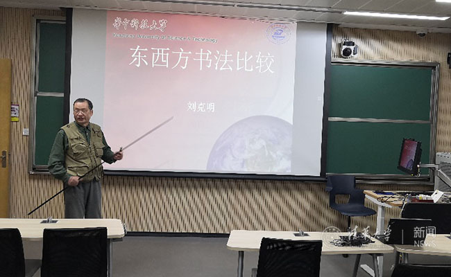 推门而入,空无一人的教室里,一位年过七旬的老人正对着电脑屏幕,挥毫泼墨,讲授中国书法之美。