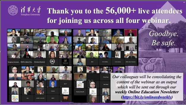 来自全球高校和国际组织的33位专家进行了主题分享,清华大学苏世民学者黄尔诺主持了四场活动。共计5.6万名国内外院系代表通过学堂在线国际版、雨课堂等观看了共约10小时的直播分享。