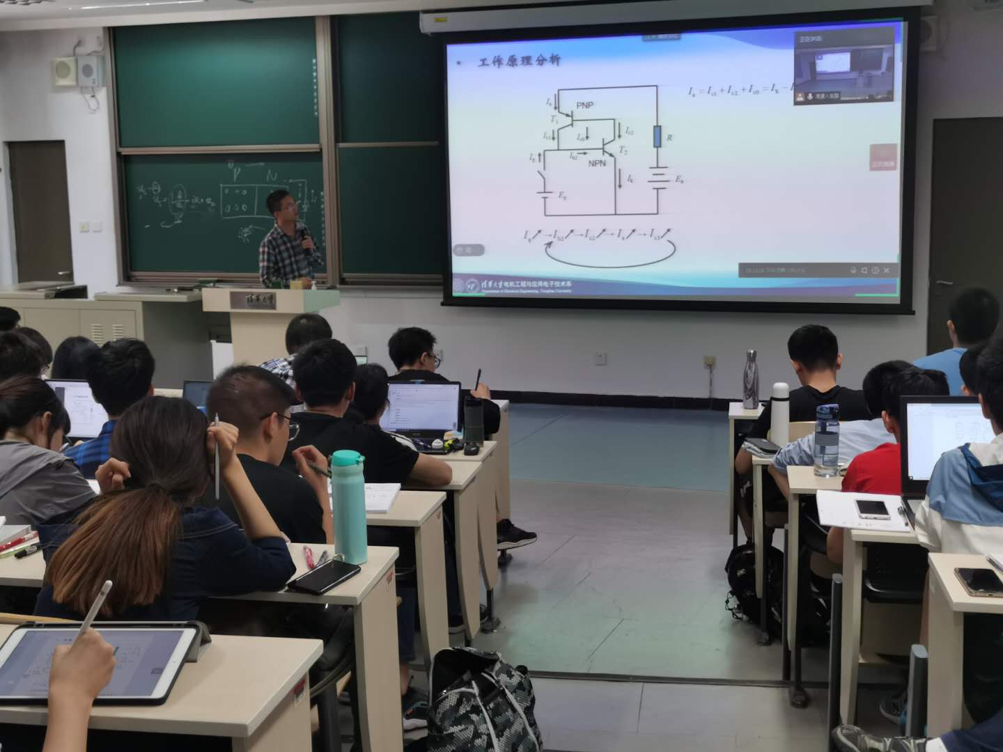 本学期电机系共开设本科生课堂68个,研究生课堂26个。其中涉及线上线下融合交互式课程共计30门。为了保障所有学生的听课效果,电机系在开课前一周,针对本学期有教学任务的教师和助教,组织了专门培训和现场演练测试。教师们下载并自学了荷塘雨课堂、腾讯会议、瞩目会议、ZOOM等多种形式的线上教学软件。对于无法返校的同学,任课教师都会在开课前与线上学生逐一联系沟通,并专为新的教学模式精心准备了线上线下互动环节;另外配备了场外助教和在线助教进行实时监控,从而保障教室摄像头直播、录屏直播、线上平台的录像等功能的顺利使用。