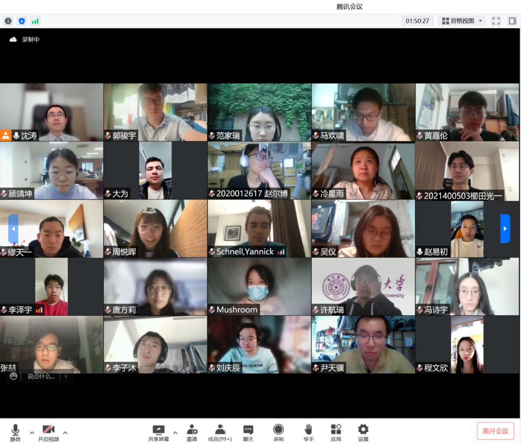 沈涛首先关注到了互动交流方式的设计。他表示,“不同类别的学生在课堂上的交流方式和互动模式存在明显的差别,留学生整体上更加活跃。”在融合式课堂上,线上和线下的进度往往存在时延。“为了在不影响课程整体进程的情况下,照顾到线上学生多样化的沟通需求,我一般会让线上的同学将问题发送到聊天室当中,我从中挑选有代表性的问题在课上进行讨论,而其他个性化的问题则在课后再具体沟通答疑,这样既不会占用大量的课上时间,也能及时交流反馈。”