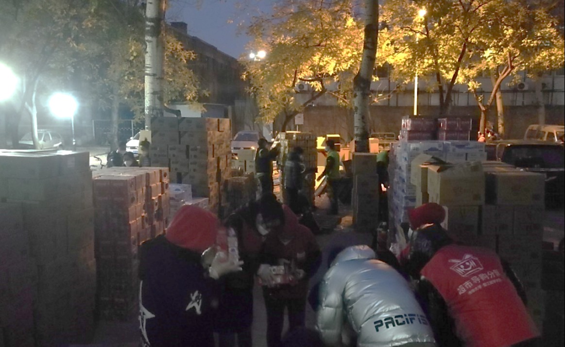 “仅11月30日一天就配送了12000份大礼包,矿泉水20000瓶。这几天还在继续备货、配送……”日夜接续的工作,商贸中心的十几名工作人员已经很久没睡到一个踏实觉。回到值班办公室,心里紧绷的弦稍微松弛下来,刘振捷和他的同事们才感到小腿肌肉的僵痛。大家疲惫到脸都不洗,倒头合衣就睡。也许两小时后,就有新的任务发布,每个人都对“宵衣旰食”有着切身体会。