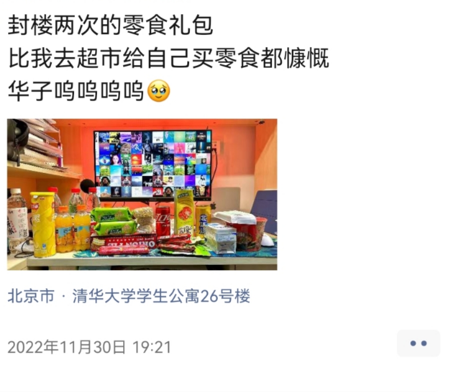 凌晨2点,应急物资配送工作协调群响起了提示音,清华大学商贸中心业务办公室主任刘振捷接到通知后,开始了新一天应急物资配送的准备。集结起应急保障人员,一宿的装袋打包。清晨7点,食品“爱心大礼包”清点并装车完毕,在第一节早课铃声响起之前,抵达宿舍楼下。