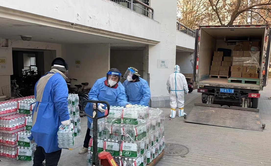 刘振捷表示,疫情期间,商贸中心除了为隔离区域的师生、居民及时提供生活物资配送,还为后勤其他部门的工作提供支持。在校园夜间临时封控的时候,为值守的职工提供睡袋、睡垫、简易床、被褥和洗漱包,让他们睡个好觉;在寒风里,为守护同学们健康安全的职工送上遮阳棚、帐篷、纸箱等防疫工作类物资。刘振捷说,在疫情防控后方,要为前方提供暖心服务。