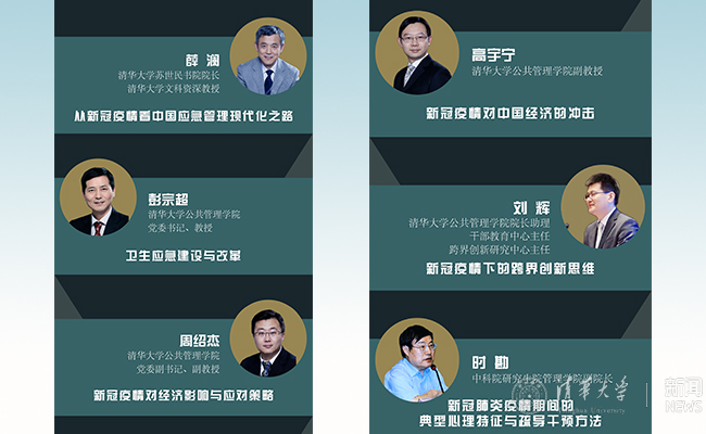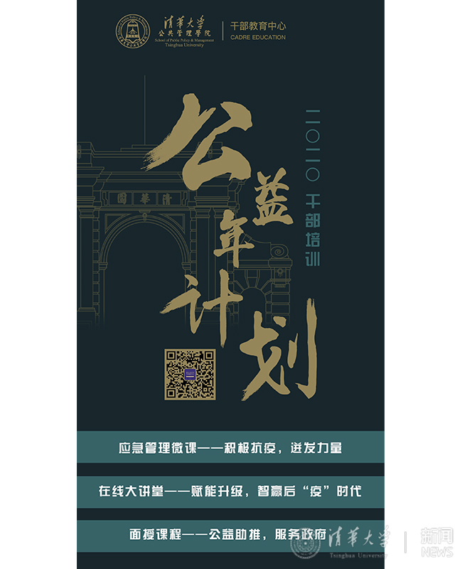 公共管理学院还通过搭载在清华大学干部培训网官方微信号上的“清华干部培训在线”小程序,开设了“应急管理疫情防控”模块,上线了一系列专题微课,如《从新冠疫情看中国应急管理现代化之路》《卫生应急建设与改革》《新冠疫情对中国经济的冲击》《新冠疫情对经济影响与应对策略》《新冠疫情下的跨界创新思维》《新冠肺炎疫情期间的典型心理特征与疏导干预方法》等。
